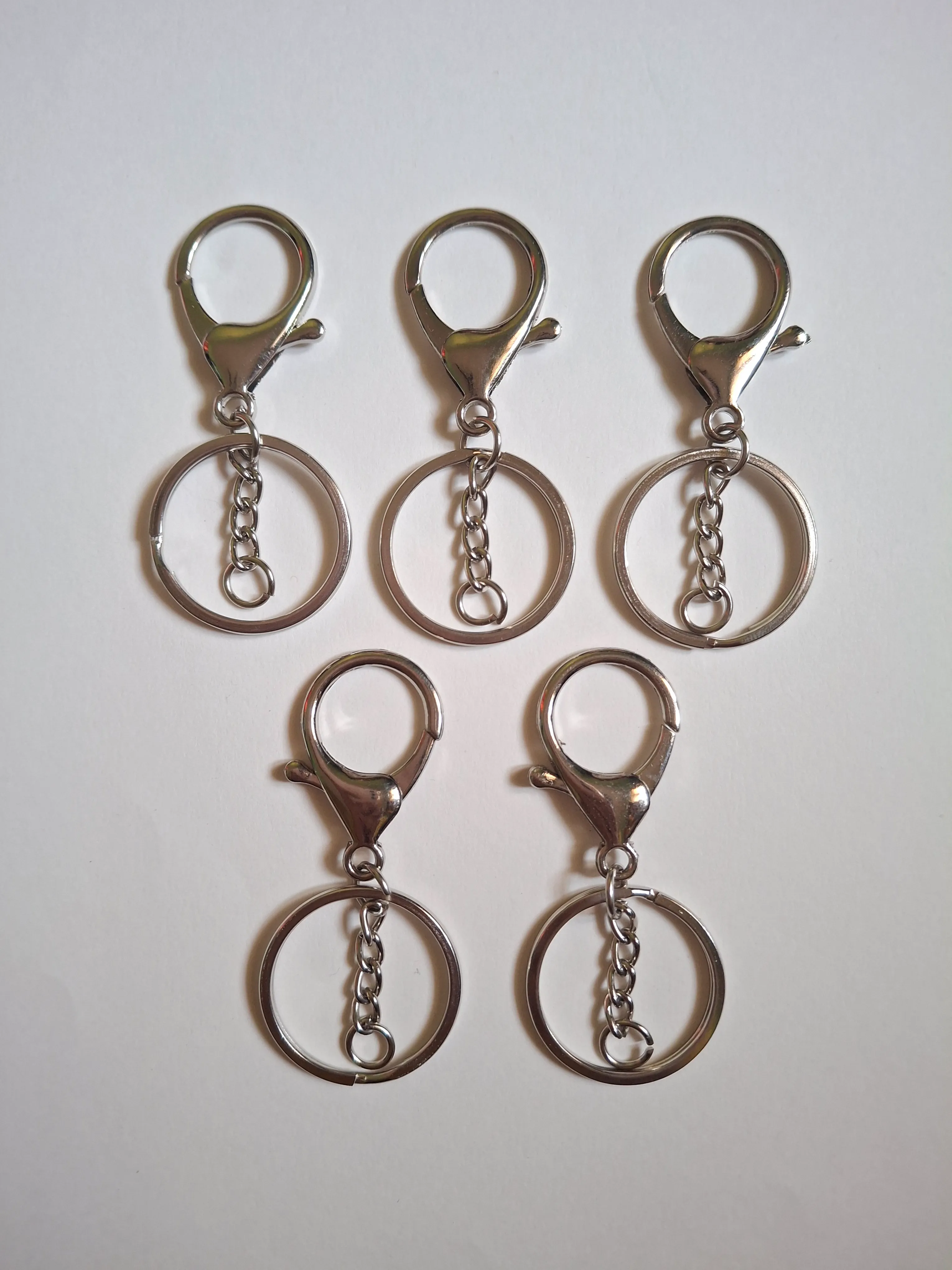 A sleek silver lobster clasp keychain hardware piece for attaching keys or charms to your crochet creations.