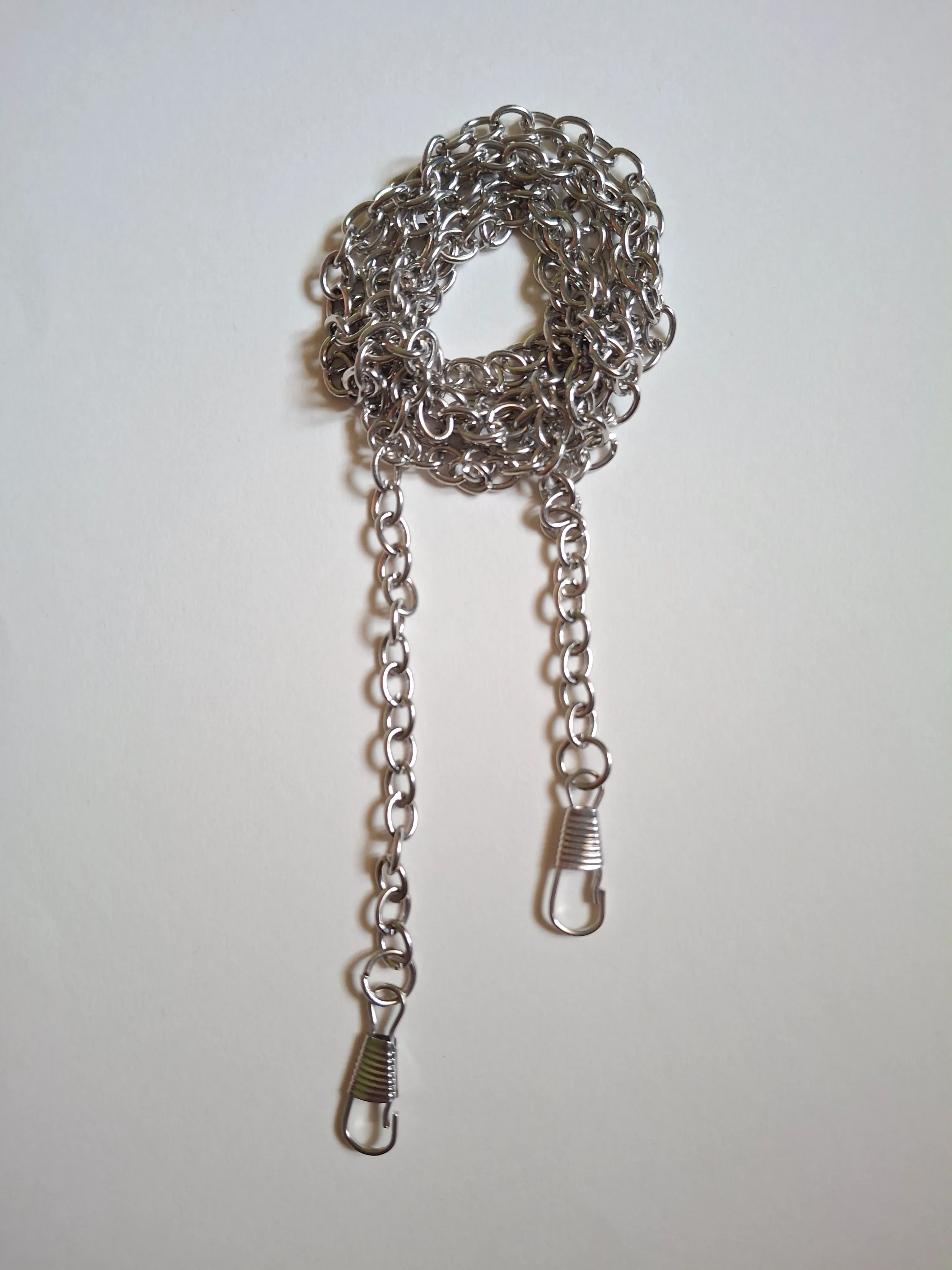 A sleek silver metal chain ideal for bag straps and embellishments on handmade crochet accessories.