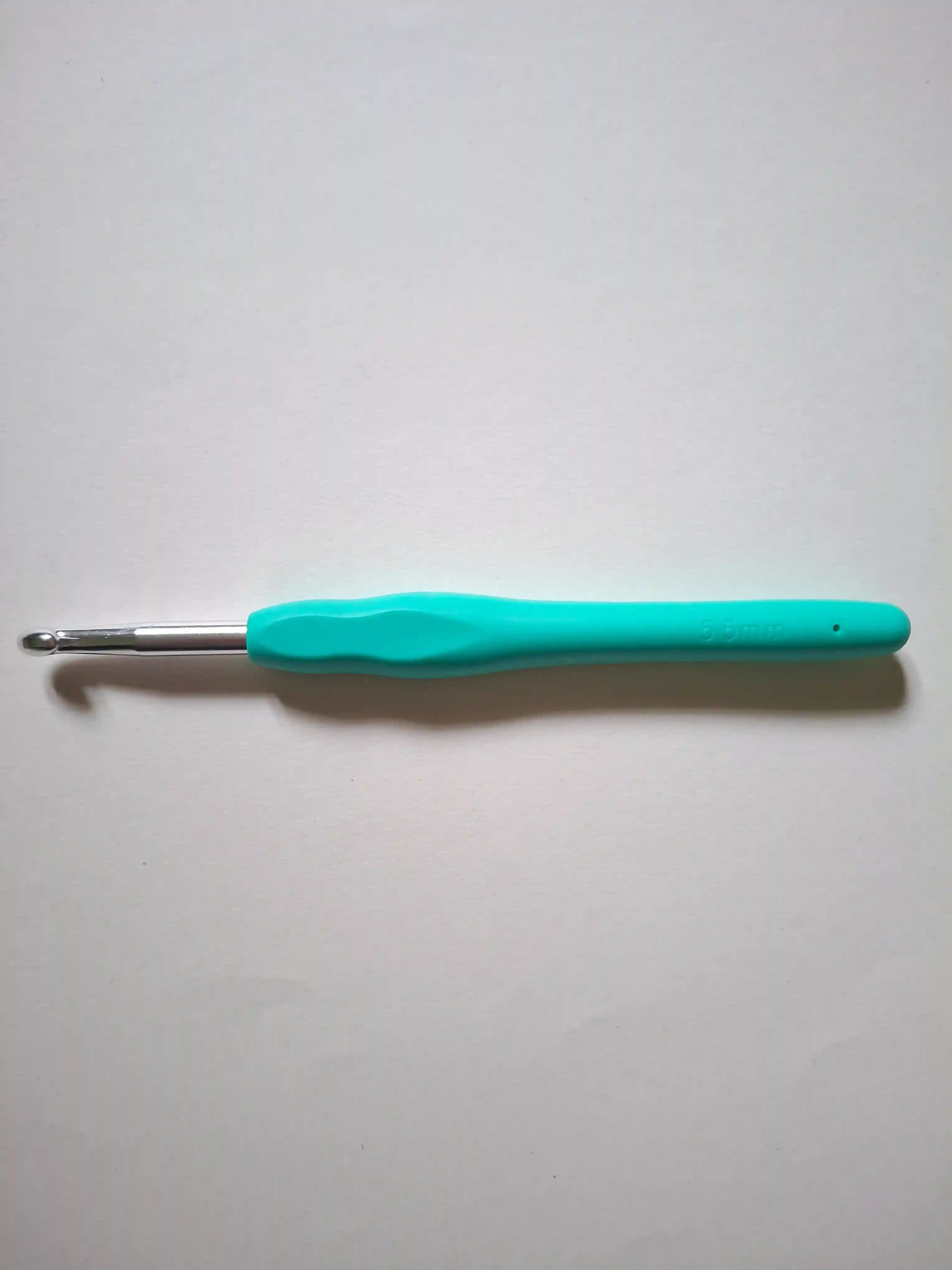 Crafted for precision and comfort, this 5.5mm crochet hook is a must-have addition to any crocheter's collection. The smooth aluminum head glides through yarn without catching or splitting stitches, giving you clean, even loops every time. The soft-grip ergonomic handle reduces hand and wrist fatigue, so you can crochet longer without discomfort. Clearly size-labelled for easy identification in your hook case.