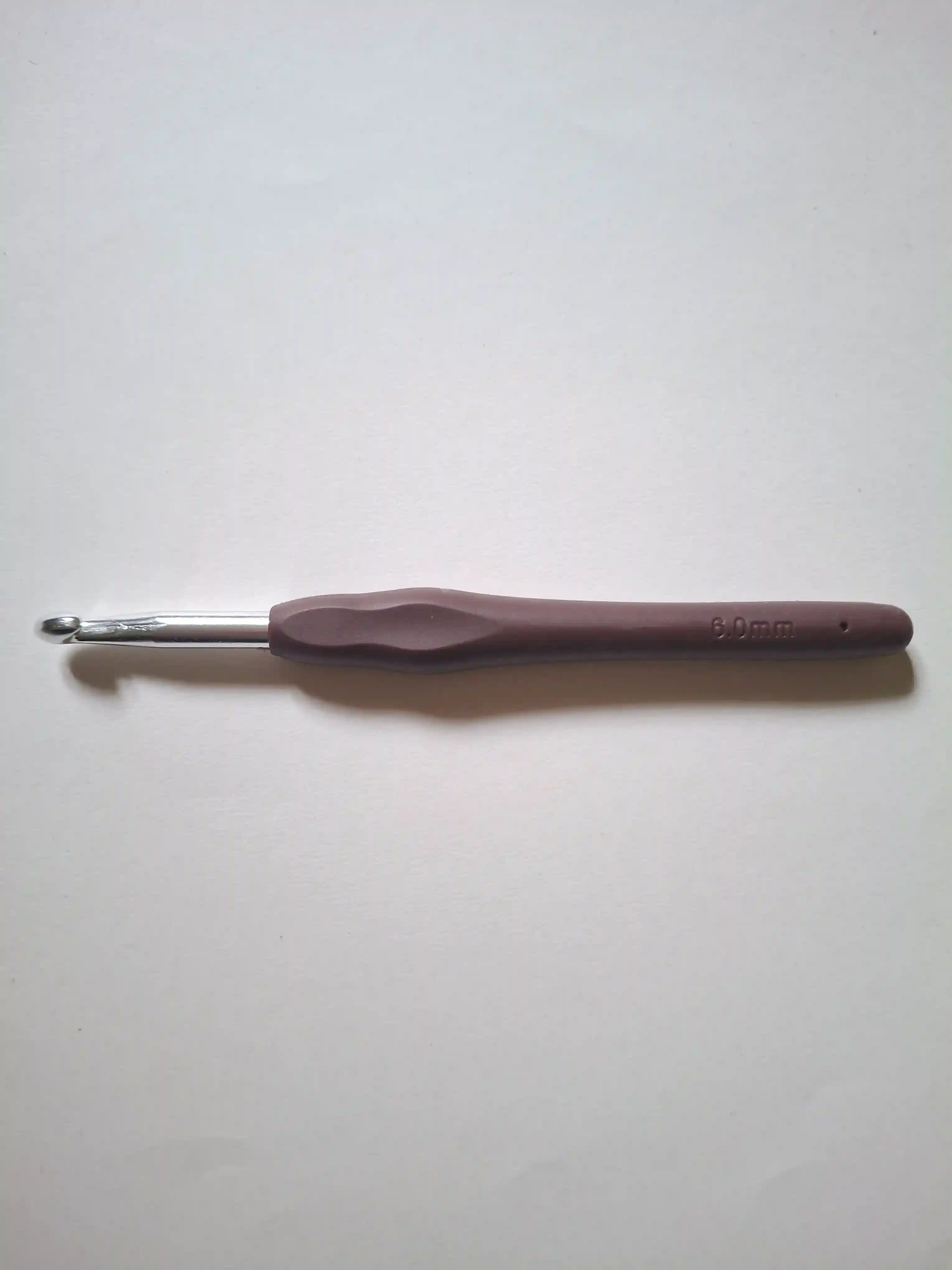 Crafted for precision and comfort, this 6mm crochet hook is a must-have addition to any crocheter's collection. The smooth aluminum head glides through yarn without catching or splitting stitches, giving you clean, even loops every time. The soft-grip ergonomic handle reduces hand and wrist fatigue, so you can crochet longer without discomfort. Clearly size-labelled for easy identification in your hook case.